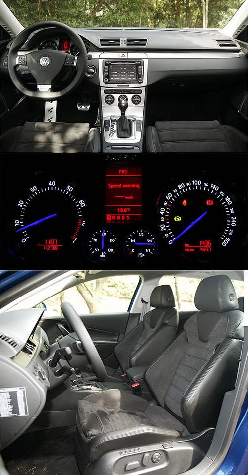 R36的內(nèi)飾設(shè)計,仍提供駕駛與乘員相當(dāng)豐富的感官。維持車系有條不紊的簡約風(fēng)格,R36車室內(nèi)已不見任何一絲木紋飾板;取而代之的則是完整的T字型金屬飾板,以縱橫之勢鋪陳其中。少了分豪華,科技與性能質(zhì)感卻油然而生。儀表板部份,過去大眾慣用的紅色指針,在R36身上想當(dāng)然地?fù)Q上了湛藍(lán)樣式;搭配白色字樣的刻度顯示,確實帶給駕駛員一番截然不同的性能風(fēng)味。