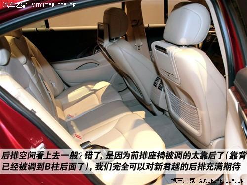 后排空間看上去很。磕侵皇清e(cuò)覺,因?yàn)榍芭抛伪徽{(diào)得太靠后,靠背已經(jīng)在B柱后面了,實(shí)際駕駛時(shí)肯定不會(huì)坐得如此靠后,況且新君越有超過2.9米的軸距,后排空間應(yīng)該很值得期待才對(duì)。