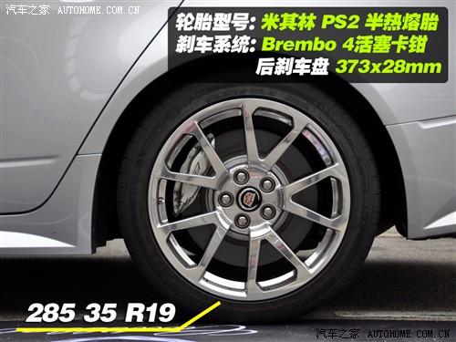 凱迪拉克CTS-V在出廠時標配的輪胎為米其林PS2半熱熔輪胎(搭配輕量化的輪轂),尺寸達到了前245mm后285mm,無論從寬度還是性能上,這套輪胎都達到了比較專業(yè)的水準!甚至有很多場地賽的車都未必能配備這種性能的輪胎(這句話是一位陪駕車手的原話),其優(yōu)勢就是抓地力強,極限較高,但不足則是高強度的駕駛后,輪胎的損耗較快,成本也不低,一天的試駕會下來,四條輪胎就要全部換掉,心疼啊……