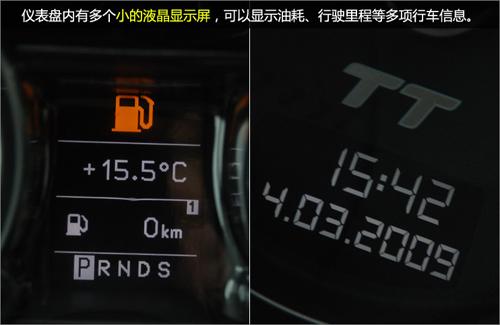 儀表盤內(nèi)有多個(gè)小的液晶顯示屏,可以顯示油耗、行駛里程等多項(xiàng)行車信息。
