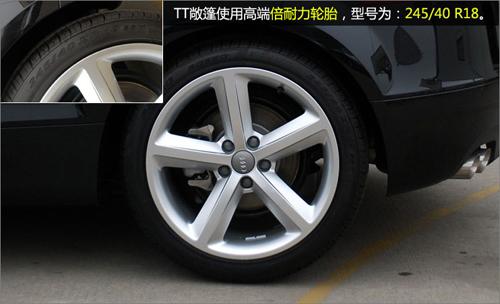 TT敞篷同樣采用了5輻鋁合金輪胎,輪胎型號為245/40 R18。