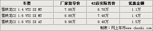 目前購(gòu)買東風(fēng)雪鐵龍C2的消費(fèi)者不僅可以享受到最高1.5萬(wàn)元的現(xiàn)金優(yōu)惠,而且還能得到商家隨車贈(zèng)送的部分車內(nèi)裝飾。據(jù)東風(fēng)雪鐵龍4S店銷售人員表示,目前只有C2運(yùn)動(dòng)版VTS的車型還在銷售,而且顏色比較單一,其余車型均沒(méi)有現(xiàn)車銷售。