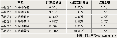 據(jù)長(zhǎng)安馬自達(dá)銷售人員表示,購(gòu)買馬自達(dá)2車型除了可以得到7000元現(xiàn)金優(yōu)惠外,還可以得到廠家贈(zèng)送價(jià)值千元的原廠汽車裝飾。目前馬自達(dá)2兩廂車型的貨源比較緊張,部分車型需要提前預(yù)訂,訂貨周期一般在7-15個(gè)工作日左右。由于小排量車型的購(gòu)置稅下調(diào),整體購(gòu)車價(jià)將會(huì)下調(diào)3-4千元左右,在加上目前的現(xiàn)金優(yōu)惠,消費(fèi)者目前購(gòu)車還是比較劃算的。