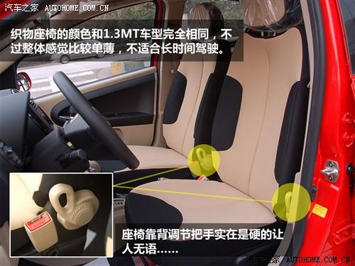光從打開(kāi)車(chē)門(mén)的第一感覺(jué)來(lái)說(shuō),熊貓給編者的感覺(jué)相當(dāng)不錯(cuò),深淺相間的座椅配色很符合熊貓的車(chē)名。但從實(shí)際乘坐感受來(lái)看,座椅還是給人以單薄的感覺(jué),平直而缺乏支撐力,不適合長(zhǎng)時(shí)間駕駛。同時(shí),座椅靠背的調(diào)節(jié)扳手實(shí)在是太硬了,主駕左側(cè)的調(diào)節(jié)扳手所留給駕駛者伸手的空間又實(shí)在是非常小,僅操作了一次以后編者已經(jīng)滿頭大汗,希望這個(gè)只是個(gè)別現(xiàn)象而已。