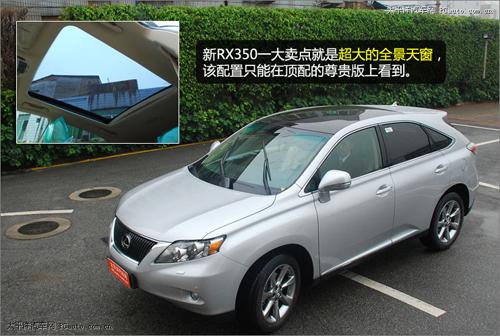 從高處俯瞰新RX350,長890 mm,寬800 mm的全景式天窗映入眼簾。這樣的設(shè)計可以讓后排乘客也可充分享受到陽光的滋潤。值得一提的是,該項(xiàng)配置僅可在售價達(dá)85.2萬元的RX350尊貴版上看到。