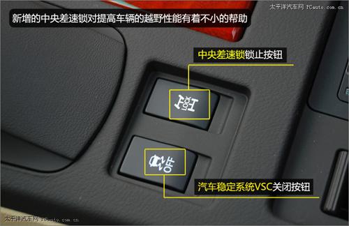 在排檔桿的后方,是中央差速鎖鎖止按鈕和汽車穩(wěn)定系統(tǒng)VSC關(guān)閉按鈕。汽車穩(wěn)定系統(tǒng)VSC相當(dāng)于德系車常見的ESP系統(tǒng),對(duì)于穩(wěn)定高速行駛的車輛有著很大的幫助。此外,新RX350還標(biāo)配了上坡輔助系統(tǒng)HAC、防抱死制動(dòng)系統(tǒng)ABS配制動(dòng)力輔助系統(tǒng)BA、電子制動(dòng)力分配系統(tǒng)EBD、牽引力控制系統(tǒng)TRC、汽車動(dòng)態(tài)中和管理系統(tǒng)VDIM,可以給駕駛員和乘客以最好的保護(hù)和輔助。