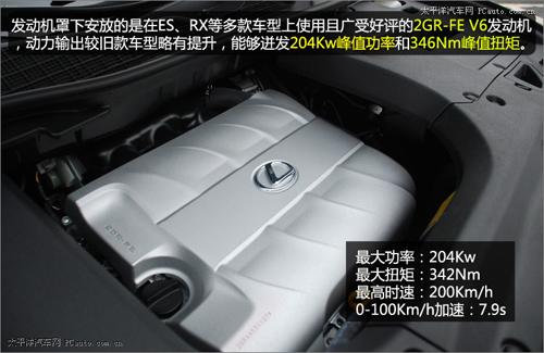 在新RX350上沿用了廣受好評(píng)的2GR-FE V6發(fā)動(dòng)機(jī)。這款發(fā)動(dòng)機(jī)經(jīng)過(guò)重新調(diào)校后,動(dòng)力輸出較舊款的RX350略有提升,能夠迸發(fā)204Kw峰值功率和346Nm峰值扭矩。最高時(shí)速可達(dá)200Km/h,0-100Km/h加速也僅需7.9s。先期引入國(guó)內(nèi)的RX系列車(chē)型并沒(méi)有使用混合動(dòng)力系統(tǒng),不過(guò)想必一向?qū)Νh(huán)保十分重視的雷克薩斯品牌會(huì)在不久的將來(lái)將搭載有混合動(dòng)力系統(tǒng)的RX車(chē)型引入到國(guó)內(nèi)市場(chǎng),豐富RX的產(chǎn)品線。