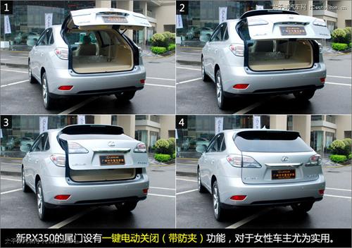 新RX350的尾門(mén)設(shè)有一鍵電動(dòng)關(guān)閉(帶防夾)功能,對(duì)于身材嬌小的女性車(chē)主來(lái)說(shuō)尤為實(shí)用。值得一提的是,這個(gè)價(jià)位的SUV中,配有該項(xiàng)功能的車(chē)型并不算多,像奔馳ML350等就沒(méi)有安裝該系統(tǒng)。