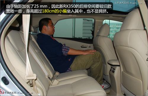 前文已經(jīng)提過(guò),新RX350的車(chē)身長(zhǎng)度要較舊款長(zhǎng)30 mm,軸距也較舊款長(zhǎng)25mm,因此新RX350的后排空間要較舊款寬敞一些,身高超過(guò)180 cm的小編坐入其中,也不顯擁擠。不過(guò)由于車(chē)身高度較舊款車(chē)型有所降低,RX350后排的頭部空間與舊款相比沒(méi)有什么優(yōu)勢(shì)可言。