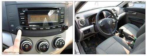 不得不提的亮點是,同悅復合式的自發(fā)光儀表盤無需特意去開啟,光線暗下來時就會自然變亮,外圈為時速表,內圈為轉速表,左右兩側分別為水溫表和油表,非常漂亮,沒有像一些同級小型車那樣取消水溫表令人感到欣慰,這一點上確實體現(xiàn)了自主品牌的厚道。同悅儀表樣式效果都和凱美瑞很相像,充滿了立體感受。不過精細度程度仍然表明這只是經濟自主小車。4個圓形空調出風口比悅翔更時尚,CD下的儲物格也充分利用起來。