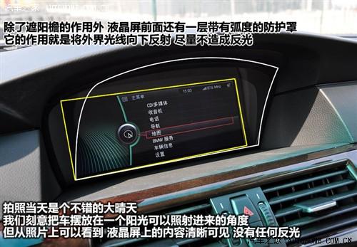 在一些配有中控臺液晶屏的車上,經(jīng)常會遇到屏幕反光而使我們看不清屏幕內(nèi)容的情況,這在陽光明媚的天氣或清晨旁晚陽光斜射的時候更容易發(fā)生,但寶馬5系iDrive系統(tǒng)的液晶屏基本不會遇到這樣的麻煩。