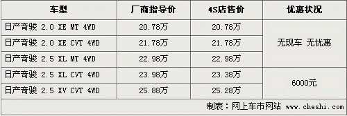 東風(fēng)日產(chǎn)奇駿優(yōu)惠6000元