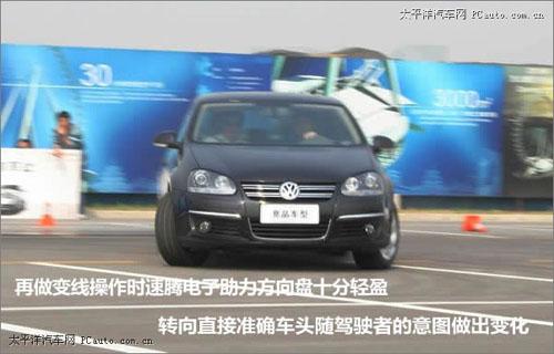 首先我們將速騰加速到80公里/小時,油門到底,車猛的竄了出去,再做變線操作時,電子助力方向盤十分輕盈,轉(zhuǎn)向直接準(zhǔn)確,車頭隨駕駛者的意圖做出變化,只是在做出太大動作時,速騰的轉(zhuǎn)向不足的情況比較嚴(yán)重。在整個過程中速騰底盤表現(xiàn)出深厚的功底,“駕駛者之車”的美譽名副其實。