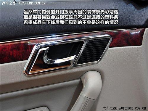 雖然車門內(nèi)側(cè)的開門扳手周圍的裝飾條光彩熠熠,但是很容易就會發(fā)現(xiàn)在這只不過是連接的塑料條,希望成品車下線后我們見到的不會是這樣的情況。在車門上專門用于側(cè)窗玻璃除霜的出風(fēng)口設(shè)計(jì)比較貼心,終于在我們自己的產(chǎn)品中看到了這種人性化度較高的設(shè)計(jì)。這個小出風(fēng)口在車內(nèi)外溫差較大時,玻璃上的霧氣對駕駛安全有很大影響,所以保持該區(qū)域內(nèi)的清透非常有必要。