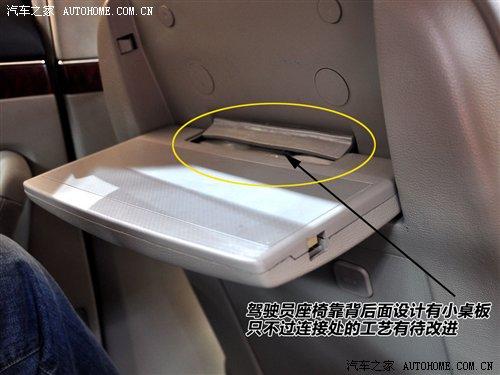 在駕駛座椅背后還設(shè)有一個可折疊收起的小桌板,思路是好的,但連接處處理的很不規(guī)整,做工確實(shí)欠火候。
