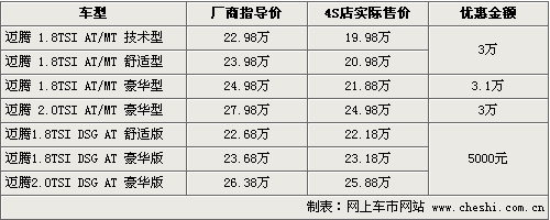 據(jù)一汽大眾北京地區(qū)4S店銷售人員介紹,目前老款的邁騰車型數(shù)量已經(jīng)不多了,只有少量1.8T和2.0車型。新款DSG版本車型目前在售的有三款,包括了1.8TSI自動(dòng)檔舒適版和豪華版,以及2.0TSI 自動(dòng)豪華版。新款售價(jià)相比老款有一定幅度的降低,但性價(jià)比更高。目前購買新款車型的消費(fèi)者,也可以有5000元的現(xiàn)金優(yōu)惠。