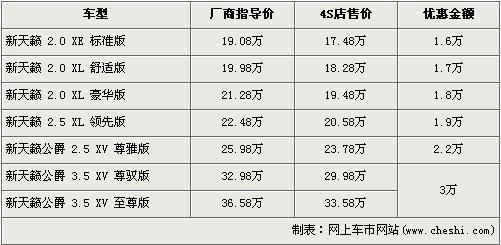 根據(jù)4s店銷售人員介紹,近期購買新天籟的消費(fèi)者可以享受到全系最高3萬元的優(yōu)惠。新天籟車型分為2.0、2.5以及3.5三個(gè)排量,3.5L車型目前讓利3萬元達(dá)到了全系的最高,經(jīng)優(yōu)惠后3.5 尊馭版和3.5至尊版售價(jià)分別降到了29.98萬元和33.58萬元。而其他兩個(gè)排量車型則采用的是買車購置稅減半的優(yōu)惠政策,根據(jù)消費(fèi)者要求的不同,減去的一半購置稅也可以抵車價(jià)。全系入門級(jí)的2.0標(biāo)準(zhǔn)版經(jīng)優(yōu)惠后,售價(jià)跌破18萬元,僅為17.48萬元。優(yōu)惠銷售人員還介紹,新天籟全系均無現(xiàn)車,欲購買車需交訂金1萬元,約等1個(gè)月可提車。