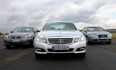在這次對比測試中,E級又不可避免的遇到了來自慕尼黑和英格爾施塔特的老對手:寶馬5系和奧迪A6。292馬力的E350 CGI售價51944歐元;290馬力的A6 3.0TFSI帶有quattro四驅(qū),售價48600歐元;寶馬530i售價46500歐元,擁有272馬力。