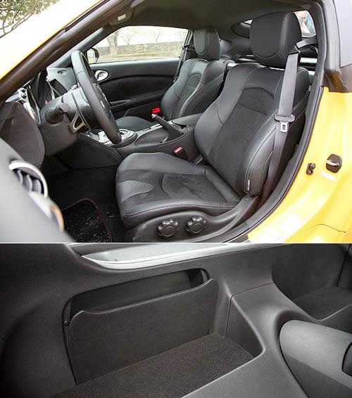 拉開無窗框設(shè)計(jì)的車門,兩張曲線豐富的運(yùn)動(dòng)化座椅映入眼簾。盡管新一代370Z的軸距縮短,不過對于純粹雙座的跑車而言,370Z的車室空間已足夠使用。坐定其中,370Z的乘坐高度并不很低,對一般駕駛者而言并不會(huì)太過極端,但座椅若能加入高低調(diào)整,相信更能找到適當(dāng)?shù)鸟{駛坐姿。
