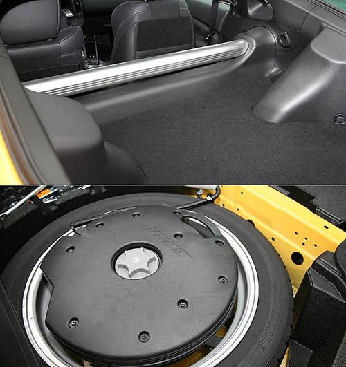 在雙門跑車的弱項的載物能力上,370Z也有不小幅度的提升。掀起掀背尾門,過去350Z橫貫其中的后懸吊拉桿已看不到了;370Z提供較為完整的行李廂空間,金屬拉桿則前移至行李廂邊緣,在提供車體剛性的同時,降低對于置物空間的干擾。