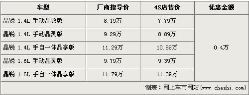 據(jù)記者了解,據(jù)記者了解,目前購買斯柯達(dá)晶銳車型的車主可以享受到4000元的優(yōu)惠。晶銳1.4L低排量車型共分為手動晶致版、手動晶靈版和手自一體晶享版三個車型,經(jīng)優(yōu)惠后售價分別降為7.79萬元、8.89萬元及10.89萬元。晶銳1.6L車型共分為手動晶靈版和手自一體晶享版兩個車型,經(jīng)優(yōu)惠后售價降為9.39萬元和11.39萬元。記者還了解到,斯柯達(dá)晶銳有一個特色的選裝車頂顏色的項目,可以把任意一款晶銳車型的車頂換成與MINI一樣的白色,換裝白頂?shù)膬r格為在原廠商指導(dǎo)價的基礎(chǔ)上多加1750元現(xiàn)金,欲選裝白頂?shù)南M者需交1萬元訂金,約等2-6周后才可提車。