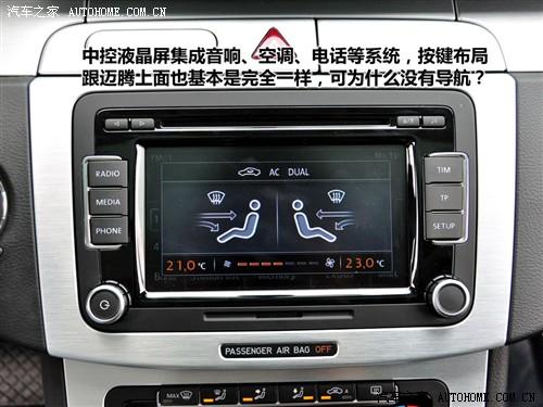 中控面板上有可以彈出的撥號(hào)鍵,右側(cè)則有一個(gè)儲(chǔ)物用的小抽屜,如果你見過(guò)進(jìn)口邁騰就會(huì)覺得這些都很眼熟。一個(gè)中央液晶屏基本囊括了整個(gè)音響、導(dǎo)航、電話和空調(diào)系統(tǒng)的功能,不過(guò)這款低配車型上沒有導(dǎo)航,按鍵布局跟國(guó)產(chǎn)邁騰一模一樣。