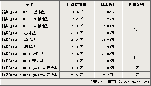 據(jù)4S店銷售人員介紹,目前新奧迪A6L現(xiàn)售的車型主要是黑色款,其他款顏色如銀色均需要預(yù)訂。訂金為1萬(wàn)元,需要等待兩個(gè)月時(shí)間。消費(fèi)者現(xiàn)在購(gòu)車可以享受一定的現(xiàn)金優(yōu)惠幅度,其中2.0、2.4和3.0排量?jī)?yōu)惠2萬(wàn)元。2.8舒適型和豪華型優(yōu)惠3萬(wàn),2.8頂配車型可優(yōu)惠到4萬(wàn)。