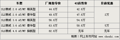 筆者從北京地區(qū)凱迪拉克經(jīng)銷商處了解到,目前SLS賽威的優(yōu)惠幅度有一定幅度的下降,其中2.8排量和3.6精英版優(yōu)惠2萬元,3.6豪華版則優(yōu)惠5萬元,F(xiàn)車顏色主要是黑色款,其他還需要預(yù)訂,但訂期時間較長。