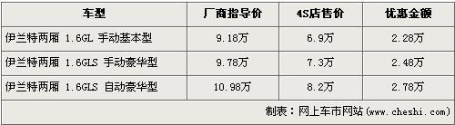 據(jù)經(jīng)銷商處銷售人員介紹,目前購買伊蘭特兩廂的消費(fèi)者還可以得到全系7.5折的優(yōu)惠,入門級車型售價已經(jīng)不足7萬元,消費(fèi)者購車后必須在店內(nèi)做一條龍服務(wù)。伊蘭特兩廂先已停產(chǎn),現(xiàn)售的車型均為庫存車,并且多家經(jīng)銷店的伊蘭特兩廂庫存車已銷售完,所以很多4S店已經(jīng)不接受此車的預(yù)訂。欲購買此車需交訂金3000元約等一周可提車,若錯過這批庫存車,將不會再買到此車型。