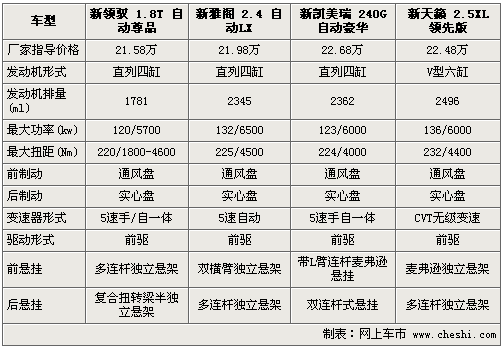 新領(lǐng)馭全系7款車型已于上月底正式上市,售價為16.98-30.38萬元。除前臉和尾部的全新設(shè)計(jì)外,老款1.8T引擎經(jīng)過重新調(diào)教最大功率達(dá)120Kw。而在此中級車細(xì)分市場中,新雅閣、新凱美瑞和新天籟均占據(jù)著一定的市場份額。下面通過對四款價格相近車型進(jìn)行詳實(shí)解析,以便為您的購車提供一定的參考。