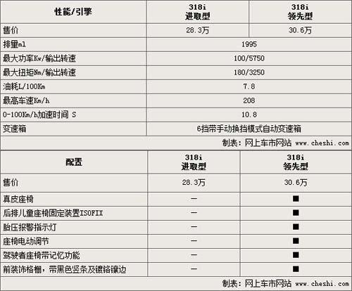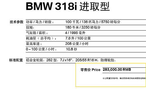 記者近日獲悉,作為國產(chǎn)寶馬3系第5代車型的入門款車型,寶馬318i進(jìn)取型已經(jīng)悄然上市。該車的售價(jià)為28.3萬元,相比09年初上市的318i領(lǐng)先型轎車的30.6萬元價(jià)格下調(diào)了2.3萬元。