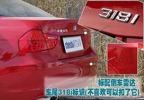 車尾兩側分別貼上了“華晨寶馬”和“318i”的字樣,為了駕駛者的泊車方便,這款車型還標配了4探頭的泊車雷達。