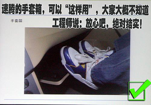 一汽大眾產(chǎn)品部工程師在演示這張照片的時候令在場媒體記者很吃驚,扶手箱打開后竟然可以當(dāng)作副駕駛乘員的歇腳板。而且一汽大眾產(chǎn)品部工程師還告訴我們,“盡管放心的去用吧,它足夠結(jié)實!”。