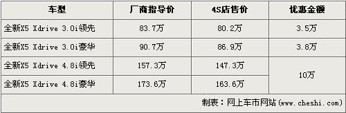 據(jù)經(jīng)銷商處銷售人員介紹,近期購買X5的消費者可以得到最高10萬元的優(yōu)惠。新款的寶馬X5 3.0i領(lǐng)先版車型和3.0i豪華版車型分別優(yōu)惠3.5萬元和3.8萬元。經(jīng)優(yōu)惠后,新X5 3.0i領(lǐng)先版和豪華版售價分別降為了80.2萬元和86.9萬元。前段時間沒有優(yōu)惠的新寶馬X5 4.8i車型目前出現(xiàn)了全系最高10萬元的優(yōu)惠。經(jīng)優(yōu)惠后,頂配的4.8i豪華版車型售價降到了163.6萬元,跌破了170萬。銷售人員還介紹,店內(nèi)目前沒有領(lǐng)先版車型現(xiàn)車,欲購買的消費者需交10萬元訂金,約等1個月后可提車。