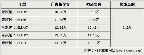 據(jù)4S店銷售人員介紹,新凱越分為1.6L與1.8L兩種排量車型,目前新凱越全系優(yōu)惠2.2萬(wàn)元,較上個(gè)月的優(yōu)惠降幅有所上升。經(jīng)優(yōu)惠后,全系最低配的1.6LX-MT車型售價(jià)下降到了8.18萬(wàn)元。經(jīng)優(yōu)惠后,1.8L手動(dòng)和自動(dòng)兩款車型售價(jià)也下降到了11.18萬(wàn)元和12.78萬(wàn)元。銷售人員還介紹,目前1.6L車型店內(nèi)無(wú)現(xiàn)車,欲購(gòu)買者需交訂金2000元,下個(gè)月才可提車。