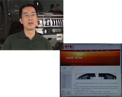 記者:“我的身后就是此次收購美國通用悍馬汽車的四川騰中重工機械有限公司,這家公司位于成都市新津工業(yè)園區(qū),這家企業(yè)在當(dāng)?shù)厥窍喈?dāng)?shù)牡驼{(diào),我們來到這里的時候發(fā)現(xiàn),這里的廠門上沒有任何關(guān)于廠名的字跡,只有后面的那個標(biāo)志告訴我們這里是騰中重工的所在地。據(jù)我們了解,這家企業(yè)主要生產(chǎn)橋梁機械和一些機械設(shè)備,并沒有生產(chǎn)整車的經(jīng)驗,那這樣的一家企業(yè)憑什么收購?fù)ㄓ煤否R呢?”