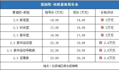 4月份蒙迪歐-致勝的銷量不到4000輛,仍有較大的上升空間。為了提升銷量,經(jīng)銷商不斷的加大其優(yōu)惠力度。我們從北京地區(qū)的經(jīng)銷商處了解到,蒙迪歐-致勝全系車型的優(yōu)惠均在2萬元以上,其平均價(jià)格比一個(gè)月前下降了1000元,目前致勝最低配車型再次跌破15萬元區(qū)間,僅售14.98萬元,性價(jià)比再次得到提升。