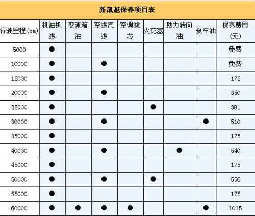 新凱越每次的保養(yǎng)間隔為5000km,首保免費(fèi)。保修政策為2年/6萬公里保修(以先到為準(zhǔn))。為了方便計(jì)算,我們以一年行駛2萬km為標(biāo)準(zhǔn),那么新凱越一年要做四次保養(yǎng)。由下表可知其一年保養(yǎng)費(fèi)用1400元。