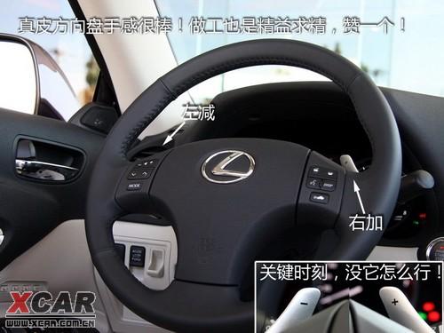 除了色調(diào)外,IS300C的內(nèi)部設(shè)計(jì)與普通車型基本上一致,不過(guò)我倒是覺(jué)得儀表盤IS300C完全可以再炫一些,“風(fēng)”要由內(nèi)而外的“拉”。IS系列的方向盤手感很棒,真皮材質(zhì)很細(xì)膩,粗細(xì)也非常趁手,普通車型都具備的換擋撥片當(dāng)然也不會(huì)缺席。