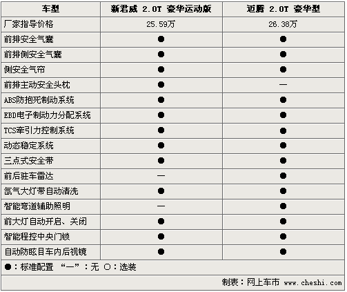 新君威2.0T和邁騰2.0T作為個性中級車,其在安全性能方面可謂是下足了功夫,前排安全氣囊、側安全氣囊及電子穩(wěn)定程序等均成為三款車的標準配置。而新君威2.0T配備的主動式頭枕,較邁騰2.0T提高了主動安全性能。此外,邁騰2.0T配備的前后駐車雷達,較邁騰2.0T的倒車雷達更加人性化。