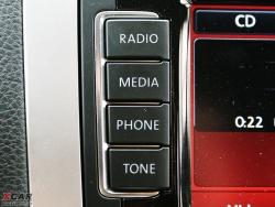 導(dǎo)航系統(tǒng)整合在系統(tǒng)之中,界面友好操作難度低,而且地圖版本較高。藍牙系統(tǒng)則需另付費選裝單獨的模塊。如此豐富的多媒體系統(tǒng)相當(dāng)值得推薦,也難怪在小到POLO大到途銳都會將其列為高檔選裝配置,只是這臺試駕車的系統(tǒng)還未漢化。