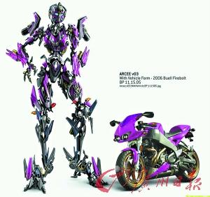 可以看到,在新增的這些角色里,量產(chǎn)車型依然是雪佛蘭的天下,尤其是正義的博派,新增車型都是雪佛蘭最新或即將上市的車型。還有三輛帥氣的摩托車,其中粉色、藍(lán)色的摩托車都是以女性角色出現(xiàn),藍(lán)色摩托車還是Ironhide(鐵皮)的女朋友,看來傻頭傻腦的鐵皮在談戀愛這個(gè)嚴(yán)肅問題上倒是一點(diǎn)兒都不傻,動(dòng)作相當(dāng)快。
