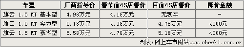 奇瑞自推出1.5L新旗云以后,該產(chǎn)品的市場競爭力進一步加大。雖然新旗云的車型有些偏老,但較低的價格依然吸引著消費者的眼球。雖然曾經(jīng)有段時間奇瑞新旗云最高可以優(yōu)惠現(xiàn)金8000元,但是現(xiàn)在由于車市轉(zhuǎn)暖,經(jīng)銷商沒必要把價格持續(xù)放低,各店只能優(yōu)惠4000元。