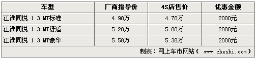 據(jù)銷售人員介紹,現(xiàn)在北京銷售同悅系列車型主要為1.3L三廂舒適版以及豪華版車型,同悅RS也是近期進駐各店,與三廂版優(yōu)惠保持一致。問及1.5L的同悅系列車型何時到店尚不知曉,不過現(xiàn)階段購買1.3L同悅?cè)龓嫒弟囆涂山o出2000元的現(xiàn)金優(yōu)惠。
