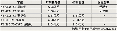 據(jù)東南經(jīng)銷商處銷售人員介紹,目前V3菱悅?cè)惮F(xiàn)車正在逐步充足貨源,最低配的車型仍因尚未投產(chǎn)而無法購買,請消費者諒解。V3系列其它的幾款高配車型各店已經(jīng)不需要再預(yù)訂,基本可以滿足消費者購車提車的需要。同時銷售人員還說,現(xiàn)在購車可享受到1000元的現(xiàn)金優(yōu)惠,另有精美的裝飾贈送。