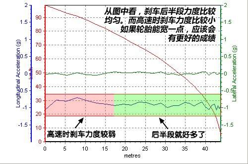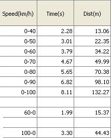 同樣在剎車測試時(shí),205輪胎還是拖了后腿,抓地力實(shí)在有限。最終剎車的平均成績是44.4米,這已經(jīng)是能接受的極限了。如果換上大一號的輪胎,剎車成績能提高到42米左右就比較理想了。