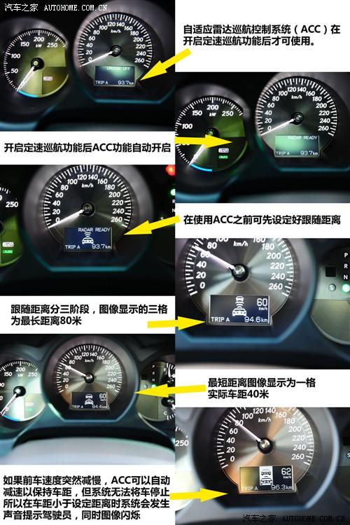 當(dāng)然,這個(gè)距離也可以在ACC開始工作以后再做調(diào)整,編輯在北京的北四環(huán)上試了試這個(gè)功能,只要該功能處于工作狀態(tài),車頭雷達(dá)是一支捕捉前方車輛并與其保持設(shè)定距離。如果前方車輛駛離原車道,雷達(dá)便會(huì)捕捉更靠前一輛車,并提速至定速巡航設(shè)定的最高速度以便盡快使車輛與前車保持設(shè)定距離。如果前車緩慢減速,系統(tǒng)會(huì)自動(dòng)給車輛減速保持車距,但該系統(tǒng)是無法將車輛完全剎停的,當(dāng)雷達(dá)發(fā)現(xiàn)與前車距離小于設(shè)定距離,且自動(dòng)減速的效果不好的時(shí)候便會(huì)發(fā)出警告音提示駕駛員采取措施,同時(shí),中央顯示屏上的圖像開始閃爍。
