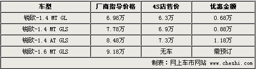 據(jù)4S店銷售人員介紹,目前銳歐全系優(yōu)惠幅度并不大,現(xiàn)售主要是1.4L排量車型,由于賽拉圖兩廂和三廂完全能夠滿足消費(fèi)者的購車需要,所以幾乎沒有消費(fèi)者選購1.6L排量的銳歐。1.4L三款車優(yōu)惠價(jià)格從0.68萬元到1.18萬元不等,同時(shí)店內(nèi)有銀色、紅色等現(xiàn)車可供選購,現(xiàn)車顏色較為齊全,消費(fèi)者選擇的空間比較大。