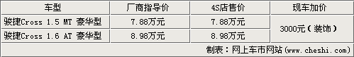 自6月18日,華晨汽車(chē)旗下中華駿捷Cross上市以來(lái),市場(chǎng)對(duì)該車(chē)的關(guān)注度不斷上升。它憑借最為潮流的外觀、更加舒適的駕乘空間,給消費(fèi)者帶來(lái)跨界車(chē)的新感受。據(jù)筆者了解,北京目前購(gòu)買(mǎi)中華駿捷Cross除個(gè)別經(jīng)銷(xiāo)商現(xiàn)車(chē)不加價(jià)外,其余經(jīng)銷(xiāo)商提現(xiàn)車(chē)均需加3000元的裝飾款。