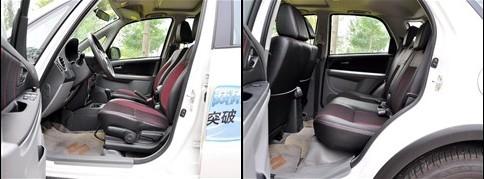 首先說說SX4較高的駕駛坐姿,個人感覺很適合這類Cross車型的特點,視野開闊、方便輕松駕駛。其次,這款運動版車型的座椅采用了雙色雙材料設計,視覺效果不錯,且支撐性和包裹性都令人滿意。前排側向的支撐較硬,坐墊角度合適,個人認為長時間駕駛帶來的疲勞程度在可接受的范圍內(nèi)。